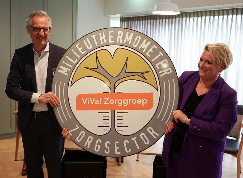 Blije gezichten bij ViVa! Zorggroep: het zilveren certificaat Milieuthermometer Zorg van Milieu Platform Zorgsector (MPZ) is gehaald voor alle 17…