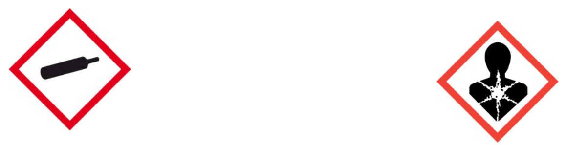 Er zijn ook 2 nieuwe symbolen voor “gassen onder druk” en voor stoffen die op “ langere termijn gezondheidsgevaarlijk” kunnen zijn: