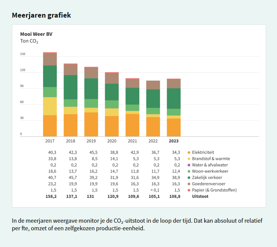- CO₂‑footprint per kwartaal, tertiaal, half jaar